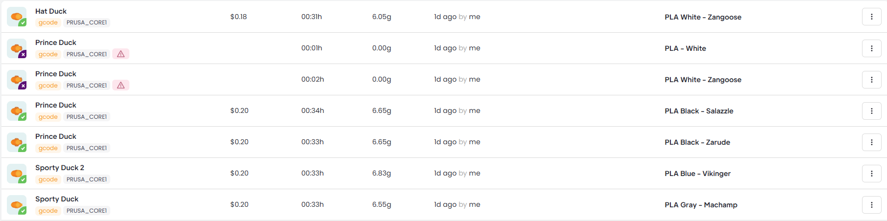 The activity page shows all your past activity on 3DPrinterOS. Submitted prints will be shown here, as well as their status (success, failure, in progress). You can click on a print to get more information.