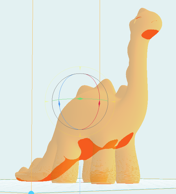Once your model is scaled, the next most important thing is rotation. Rotation determines how well your print will turn out. You want to minimize overhangs and bridges, and have as much of a flat face as possible touching the build plate.