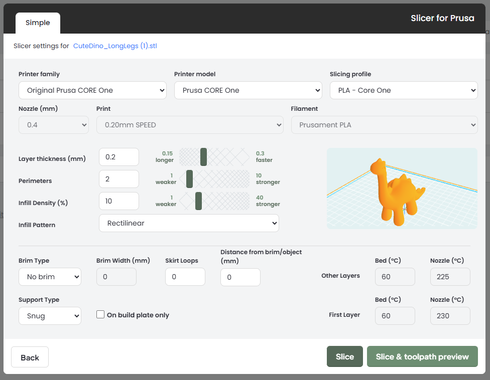 - Select Original Prusa CORE ONE for printing in PLA.