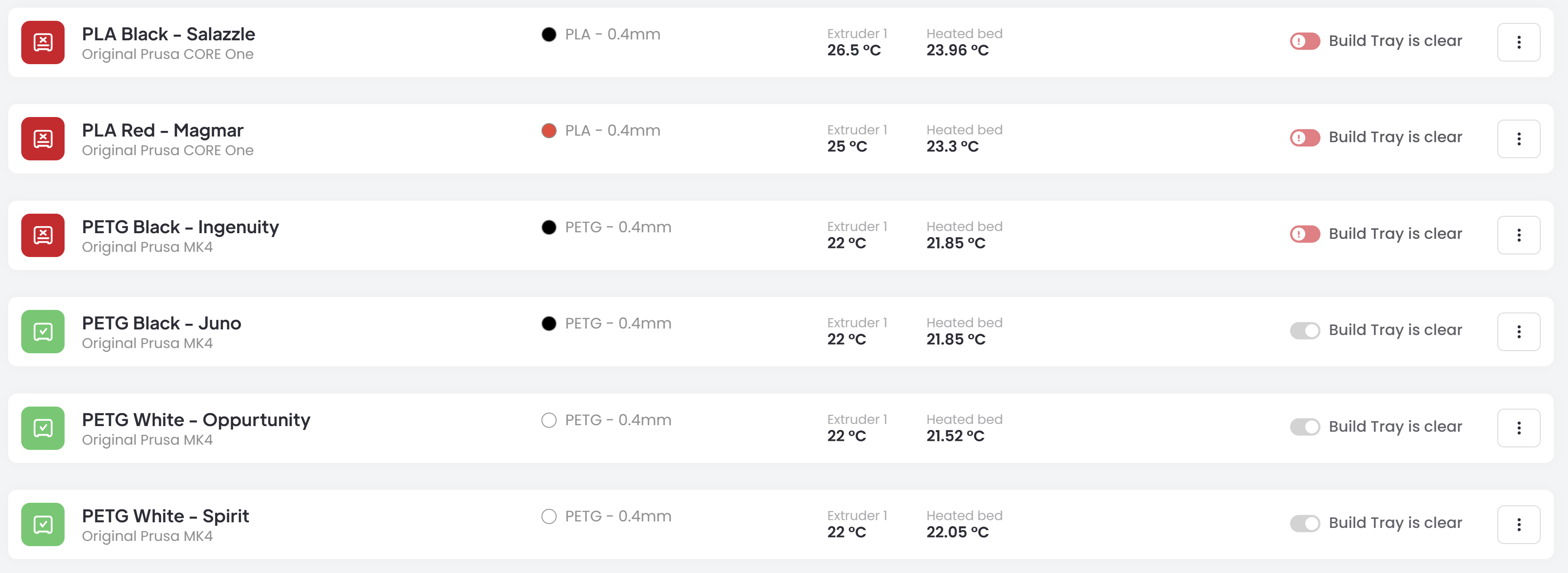 Idle printers that are not clear will be designated with a RED icon in 3DPrinterOS.