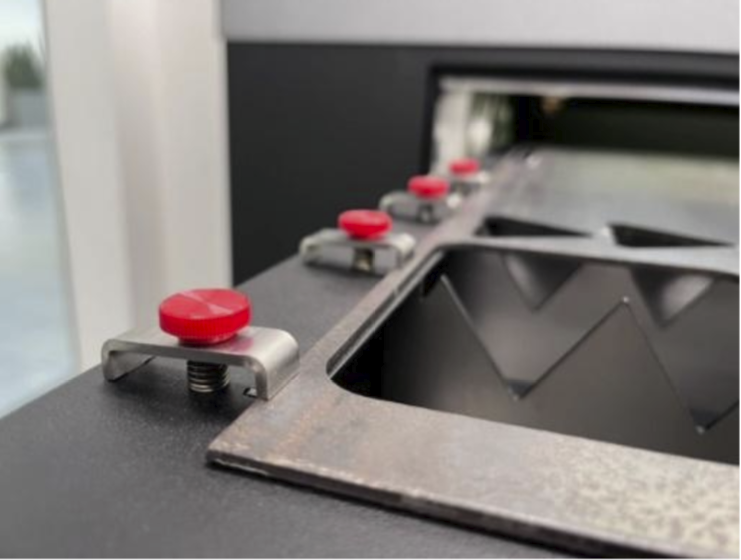 In any case, loosen the four red screws on the left side, secure your metal sheet under these screws, then re-tighten them.