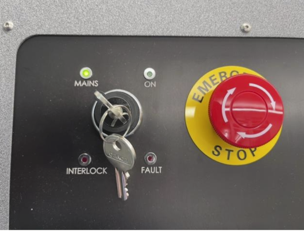 On the front panel, turn the key clockwise from MAINS to ON, then release it as the unit powers up (the will spring to MAINS) .