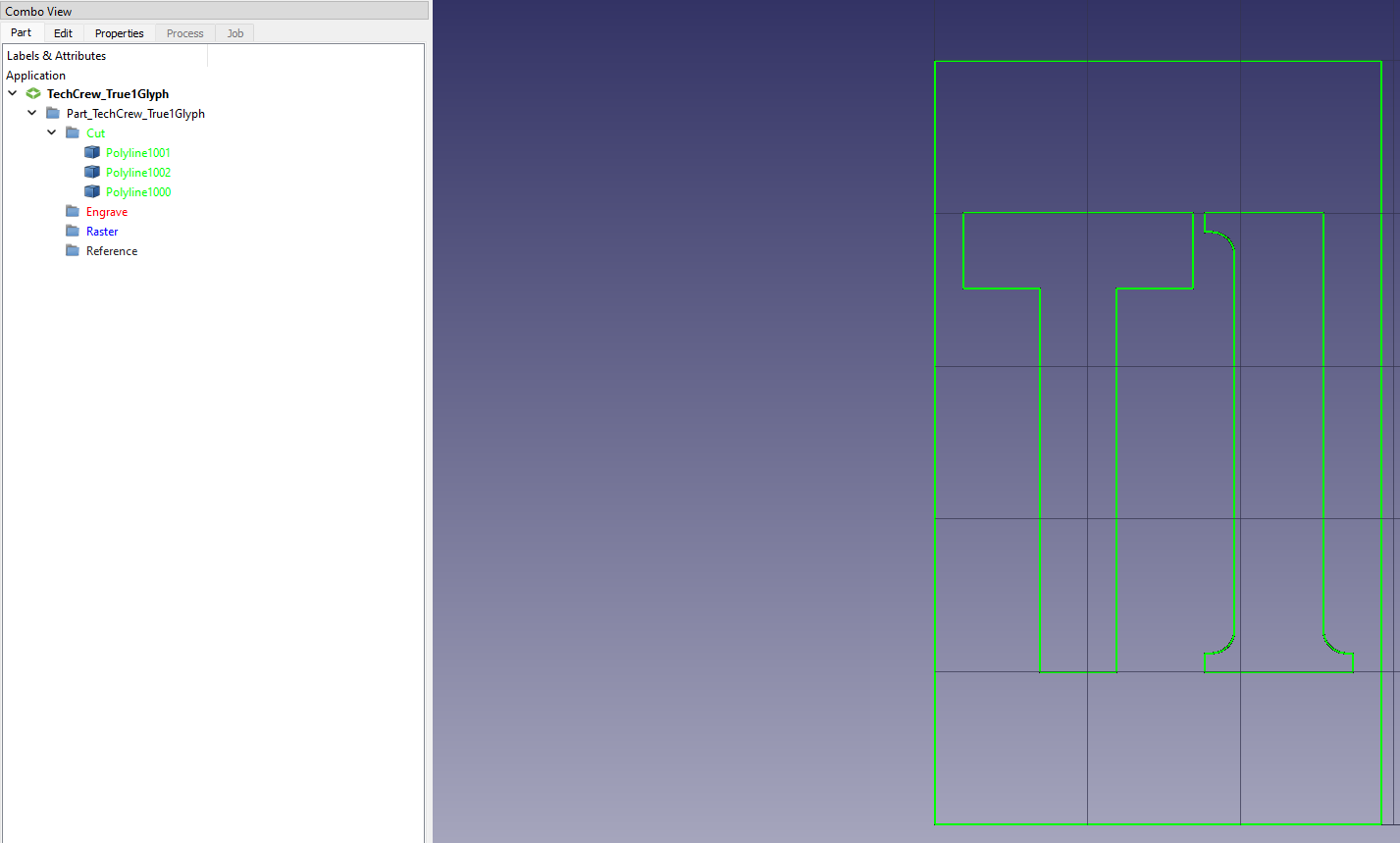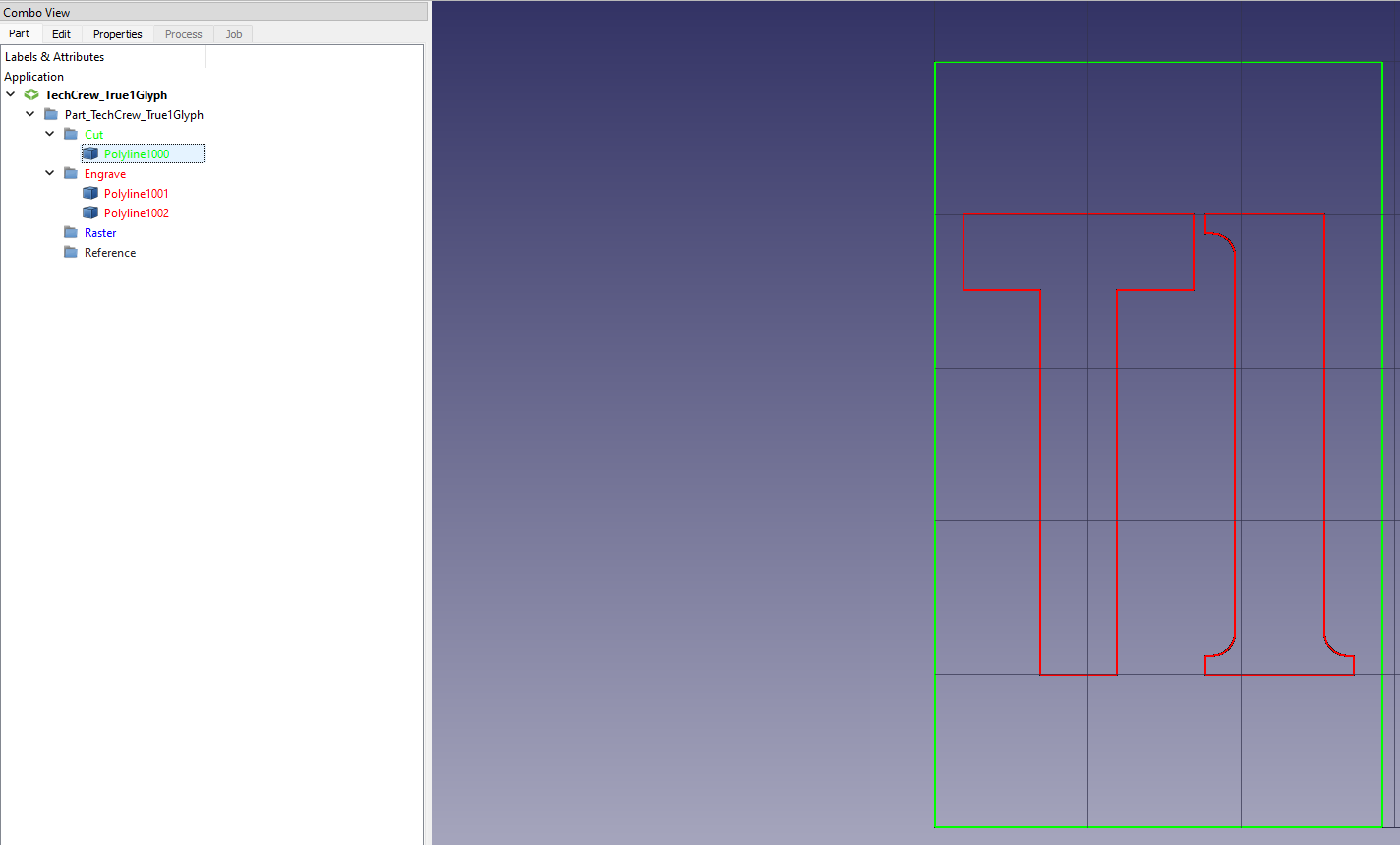 The Part Tab organizes each of your lines into folders for Cut, Engrave, and Raster. Expand the folder to reveal all your lines, defaulting to Cut.