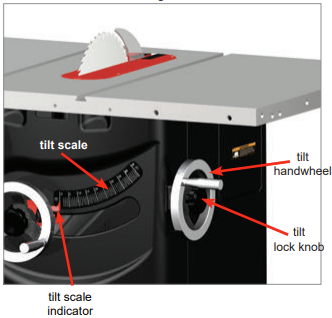 The angle of the tablesaw blade can be adjusted. This allows for beveled or mitered cuts to be completed.