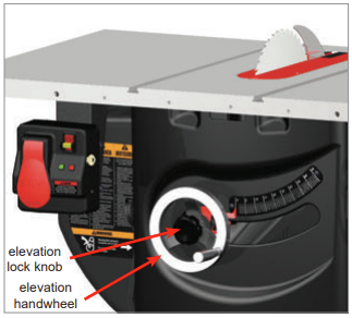 The blade should only be 1/8 to 1/4 inch above the material. Before turning on the blade, it is a good time to dial this height in.
