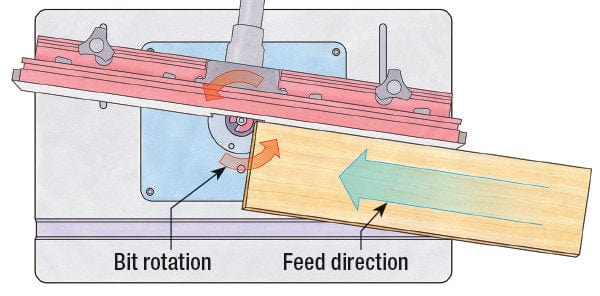 - Feed material from right to left with hands or push blocks holding the material firmly