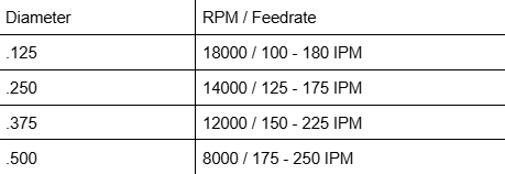 Feed rate is a function of the materials SFM, diameter of the cutter, and amount of material being removed. Below is a baseline chart for nominally sized endmills. Depending on material, fixturing, etc. some of these values may need to fluctuate.